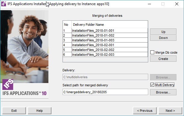 When the delivery is merged and Next is pressed, the delivery path for the installation will be switched to the merged delivery path.