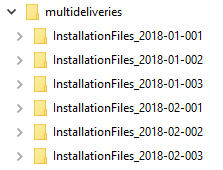The order of the single deliveries can be defined by creating a file named deliveries.txt in the top folder (e.g. c:\multideliveries). The default order is the alphabetical order, but if that doesn't correspond to the uninterrupted build sequence, this file should be created with the correct order, one row per single delivery.