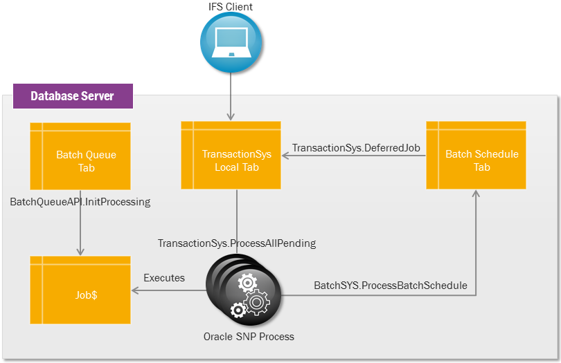 When you initiate a Batch Queue, a job called Transaction_SYS.Process_All_Pending