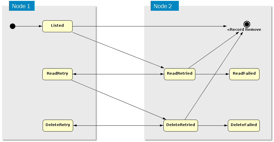 The above diagram shows possible state transitions for rows in the Connect Reader Queue.