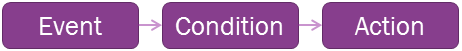 An EVENT occurs in the database that generates a call to the condition handler. The condition handler evaluates certain CONDITIONS that are registered, together with the action. If the evaluation is successful, then the registered ACTION is performed.