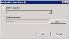 Change the Identity from the Built-in account NetworkService to the Common User (Custom account).