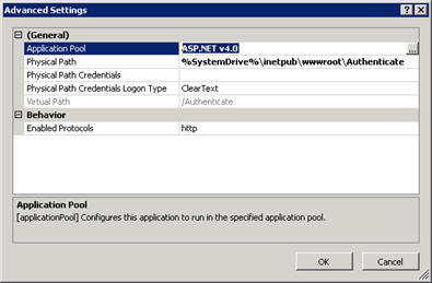 By default, Web Deploy installs the Web Service on your File Server (or another Web Server) as the Authenticate application under the Default Web Site. In IIS Manager, use Advanced Settings to change the Application Pool for this application to ASP.NET v4.0 (or .NET v4.5).
