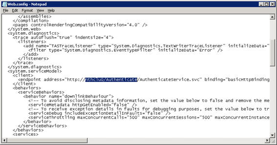 Change the endpoint for the Authentication Service to the correct machine and application name.