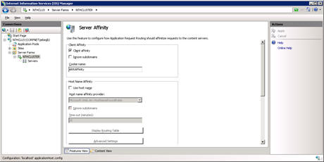 Restart IIS and check that the Load Balancer works. Note that Client Affinity will not work unless the machine name in the URL contains a ‘.’. Use the full machine name in the address.