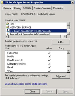 %windir%\Microsoft.NET\Framework\v4.0.30319\aspnet_regiis.exe –pa IFS_TOUCHAPPS_SERVER <common-user>
