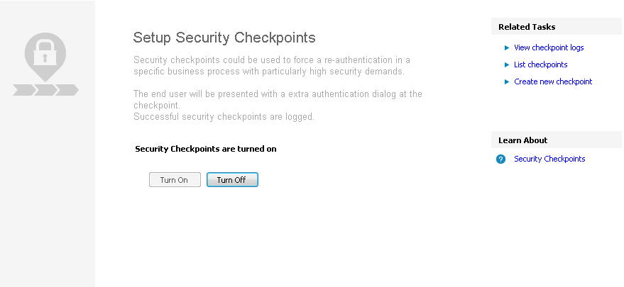 From this page you can set System Parameters for Security Checkpoints. In most installations, they should be set to State: On, Method: Password, Type: Simple. To disable all Security Checkpoints, set State: Off.