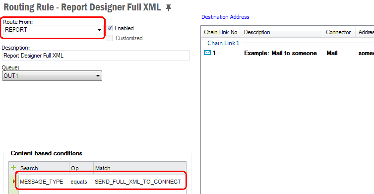Outbound routing rules that has the value REPORT as Route