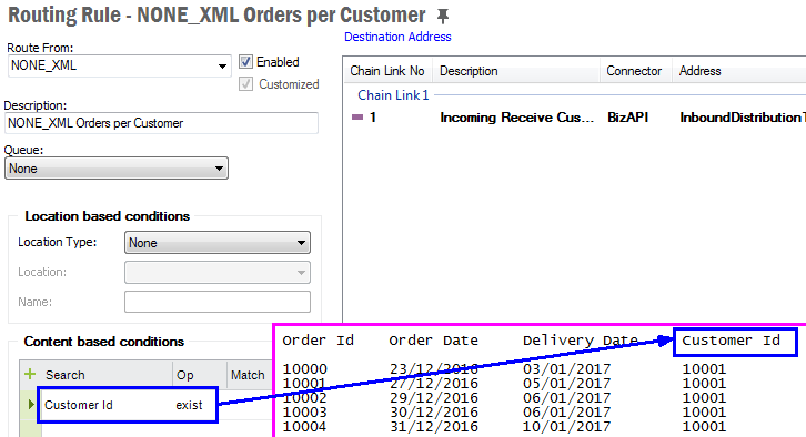 The content based routing will take place after the message has been processed by the BizAPI. The data for routing is parsed in the following order: