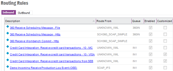 A number of Routing Addresses and Routing Rules is automatically installed on fresh installation of IFS Applications. Those addresses and rules can be however customized by the customer. Therefore it is important to determinate if a particular rule or address has been customized on system upgrade on patch delivery and upgrade only non-customized ones with new versions that may be delivered from IFS.