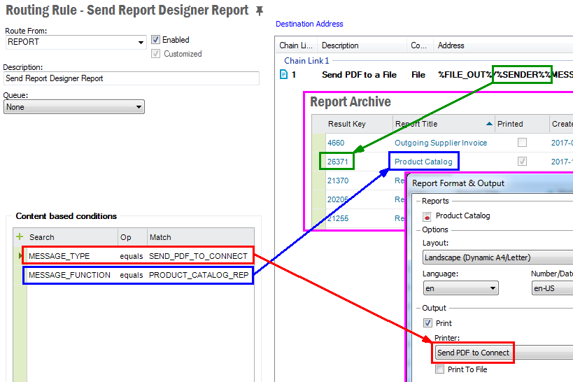 Defines routing parameters on the values provided from the different transport connectors, e.g. file name given by the file connector, mail subject etc. See Routing from Name or Location for location base routing parameters.