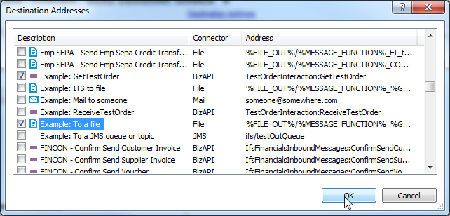 All destination addresses other than BizApi or PL/SQL addresses can be tested in the detail