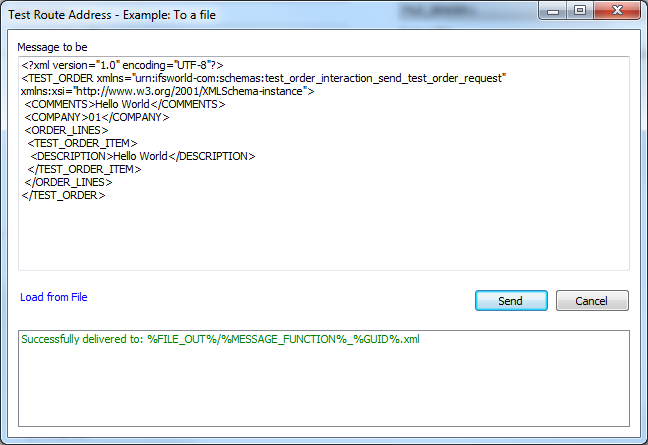 Type a message or load from a file and press Send. The result status