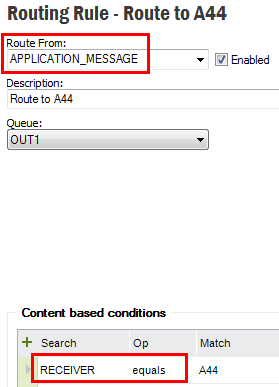 Outbound Routing Rules with value APPLICATION_MESSAGE in the Route