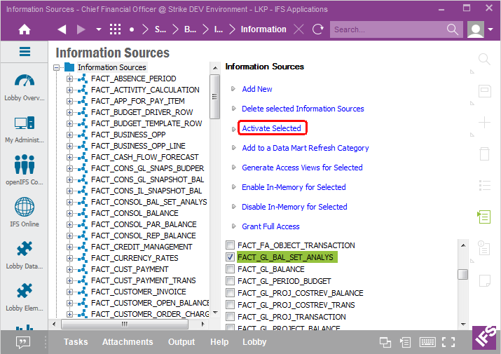 1. Use the Information Sources feature and select an Information Source that is to be activated and use the option Activate Selected.