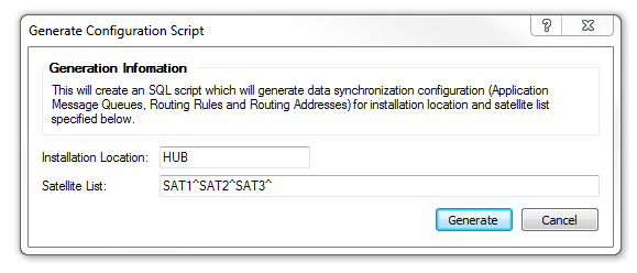 When generating configuration script, it gathers satellites and location information from Satellite Configuration and Installation Settings respectively and generate a SQL script. That particular SQL script contains a method call to generate application message queues, routing rules and routing addresses for the defined satellites.