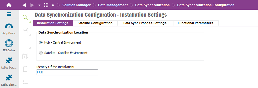 1. Navigate to Solution Manager\Data Synchronization\Data Synchronization Configuration\Installation Settings tab