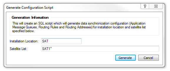 When generating configuration script, it gathers satellites and location information from Satellite Configuration and Installation Settings respectively and generate a SQL script. That particular SQL script contains a method call to generate application message queues, routing rules and routing addresses.