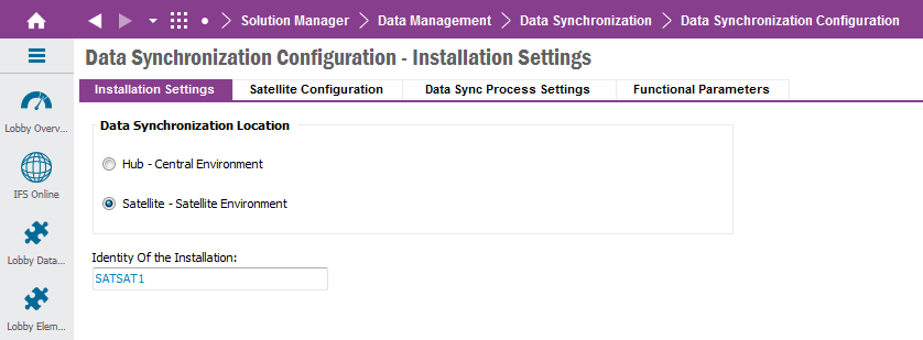 1. Navigate to Solution Manager\Data Synchronization\Data Synchronization Configuration\Satellite Configuration tab