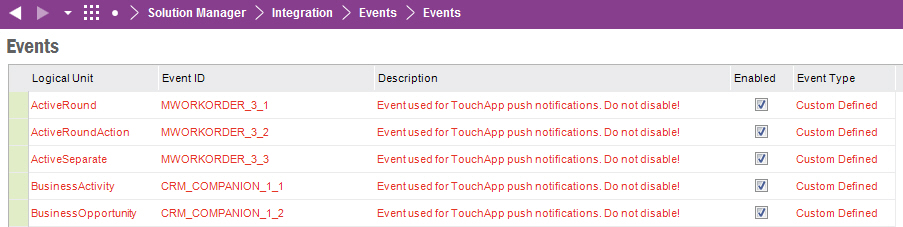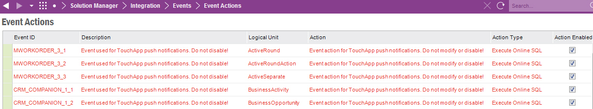Note 1: It is important that these Events and Event Actions are not altered in anyway otherwise the Push synchronization process will not work as expected.